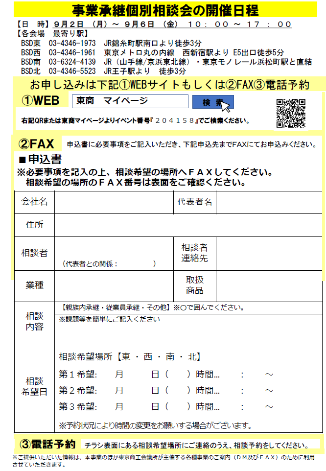 事業承継個別相談会の開催について