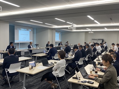 はじめに、経済産業省 経済産業政策局 企業行動課長の添田 隆秀 氏から「令和7年度税制改正に向けた展望」と題してご講演いただき、意見交換を行いました。その後、「令和7年度税制改正に関する意見(案)」について、協議を行いました。