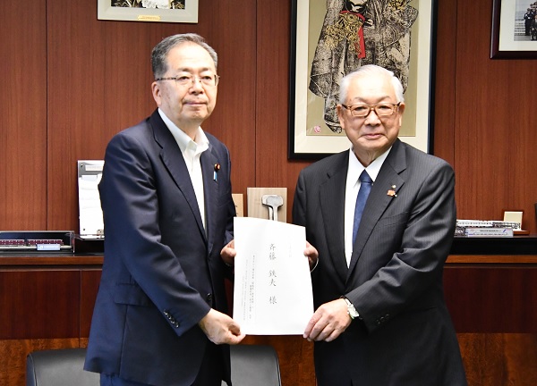 「外環の整備促進に関する要望」を⻫藤鉄夫・国⼟交通⼤⾂に⼿交しました