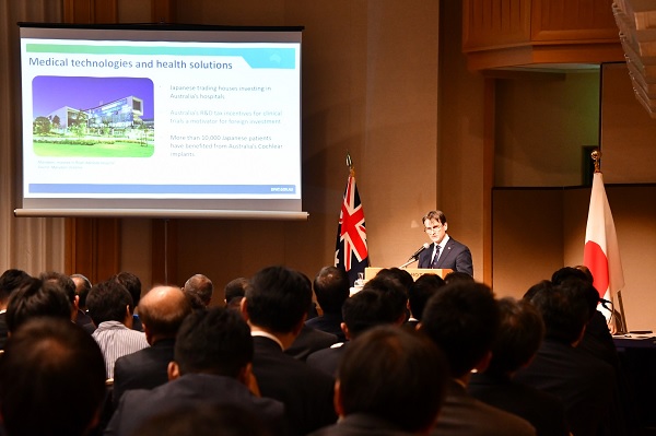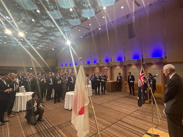 総会後は、ジャスティン・ヘイハースト駐日オーストラリア大使をお招きし、講演会を実施しました。交流会では、豪州各州駐日事務所から提供いただいたワインを飲みながら委員企業間で情報交換が行われました。
