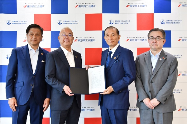 野本弘文副会頭・首都圏問題委員長(東急(株) 会長)は、9月26日、東京建設業協会の乘京 正弘会長(飛島建設(株) 代表取締役社長)、清水 康次郎副会長(清水建設(株) 専務執行役員東京支店長)より「目指せ!建設現場 土日一斉閉所 東京キャンペーン」への協力と後援に係る要請書を受領しました。