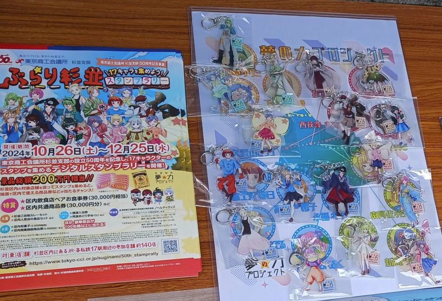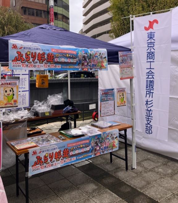 杉並支部(会長:和田新也・箱根植木(株)代表取締役社長)では、杉並区内の店舗を巡る「ぶらり杉並スタンプラリー」を10月26日(土)から開始いたしました。キックオフとして、高円寺駅周辺で行われた「高円寺フェス」で10月26日,27日の2日間、杉並支部でブースを出展し、当日アプリをダウンロードした方に対して参加賞をプレゼントしました。なお、参加賞は当支部青年部が主催した「夢の力プロジェクト」で制作した17駅を擬人化したキャラクターのアクリルキーホルダー等で、参加者からは「身近な駅のキャラクターのキーホルダーをもらえて嬉しい。これから、多くの参加店舗を回りたい」との声がありました。
