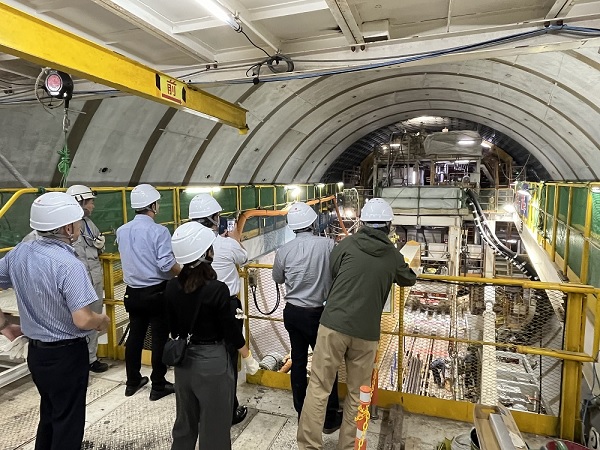 本視察会では、未公開となっている地下約50m付近の大規模トンネルの工事状況、ならびにトンネル採掘に用いられる最先端巨大シールドマシンを見学しました。参加者からは「日頃見ることのできない工事現場を見学できて貴重な体験をした」「採掘シールドマシンの迫力に圧倒された」などの声がありました。