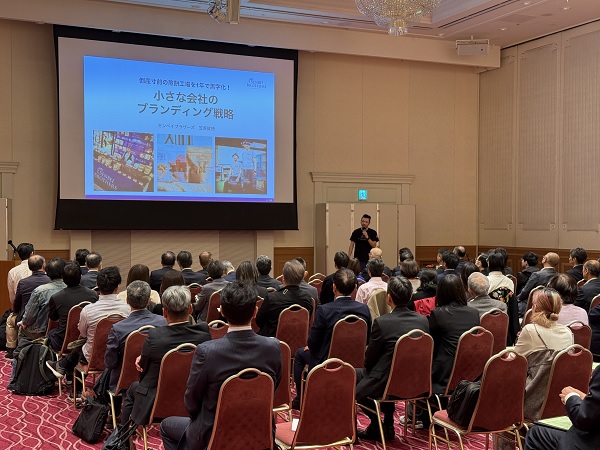 また、式典に先立ち、特別講演会として江戸川区船堀に工場のある笠原製菓(せんべいブラザース)の笠原健徳・代表取締役に「小さな会社のブランディング戦略」テーマに倒産寸前のせんべい工場を一年で黒字化させた方法についてご講演いただきました。