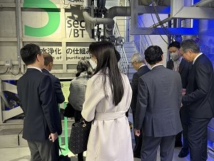 前半は三菱地所プロパティマネジメント㈱様の皇居濠水浄化施設を視察し、濠水が浄化されて綺麗な水によみがえることにより皇居周辺の水辺空間の価値向上に寄与している点を学びました。後半は丸の内熱供給㈱様の熱供給施設を視察し、大丸有エリアの地域冷暖房のみならず冷温水や電力の供給まで、当該エリアのインフラ安定化と地域全体の快適性や効率性の向上に貢献していることを学びました。視察終了後は昼食懇親会を開催、参加者同士で視察の感想や意見が交換され、活発な交流が図られました。