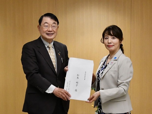 中山泰男特別顧問・東京の将来を考える懇談会座長(セコム株式会社 特別顧問)は、12月5日に松本明子・東京都副知事を訪ね、標記要望書を提出しました。