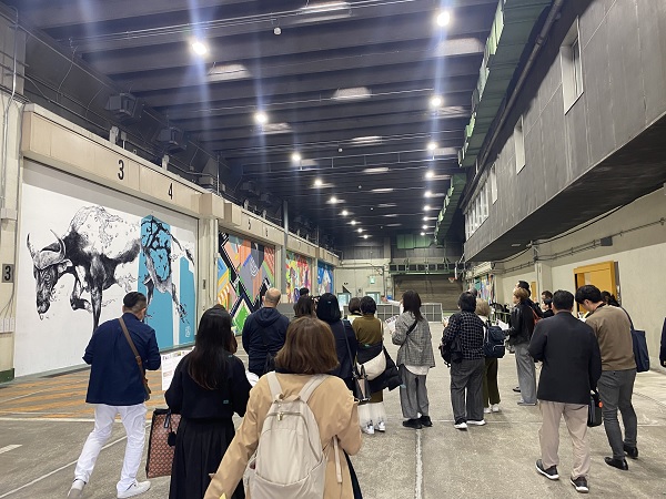 当日は、一般社団法人天王洲キャナルサイド活性化協会より天王洲周辺のアート作品について説明を伺い、天王洲周辺を散策しアート作品を巡りました。その後、天王洲から屋形船に乗り、お台場を通り東雲運河まで行くルートにて運行しました。船内では品川区立品川歴史館の学芸員による品川台場の歴史について解説を伺いました。