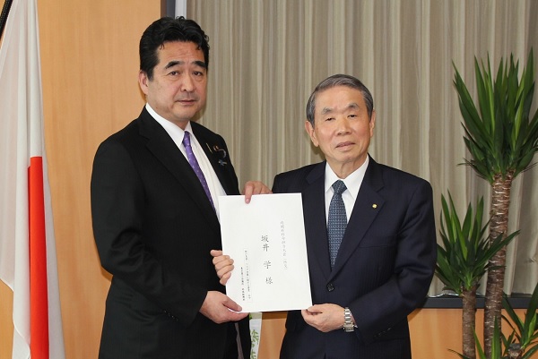 「国の災害・リスク対策に関する要望」を坂井内閣府特命担当大臣(防災)に手交しました