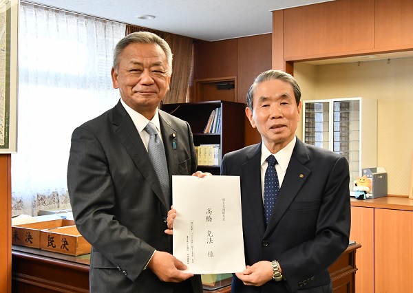 「国の災害・リスク対策に関する要望」を高橋克法・国土交通副大臣に手交しました