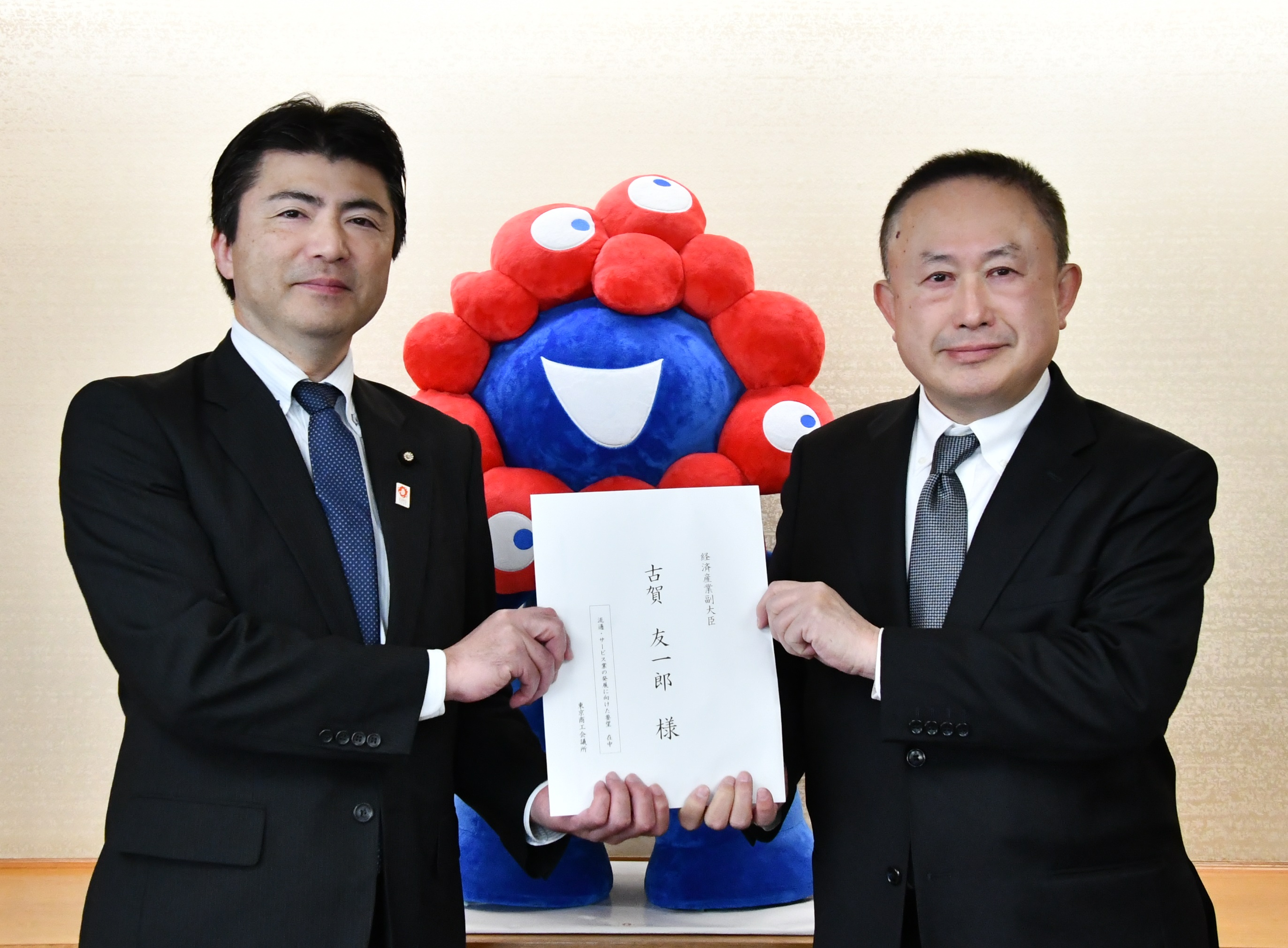 「流通・サービス業の発展に向けた要望」を古賀友一郎・経済産業副大臣に手交しました