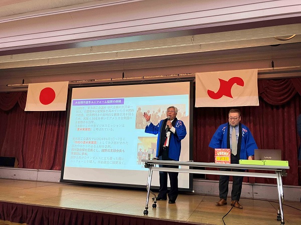 冒頭、同支部の越野充博会長が「最近『不透明な時代』と言われているが、いつの時代も、中小企業は不透明な状況の下でも脇を固めて、どんな球が飛んで来ても柔軟に対応することで、これまでの危機も乗り切ってきた。このような時こそ、知恵を出し合う仲間がいるいうことが何よりの力となる。そういう意味で北区をはじめとした官公庁の皆さま、民間の北区内外の皆さまが一堂に会して、北区を盛り上げようと頑張っておられる。こんな心強いことはない」と話し、主だった参加者を紹介しました。また、田川博己副会頭(JTB・取締役相談役)、やまだ加奈子北区長らが区内の事業者に向けてメッセージを送りました。