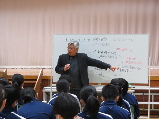 また、10日(月)には、北区立堀船中学校(阿久津光生校長)の1年生を対象に、起業体験ワークショップと越野会長による講話を開催しました。