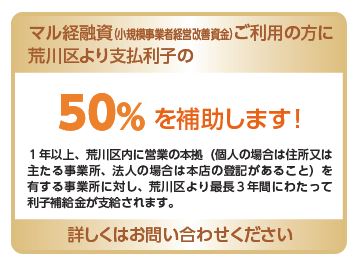 当支部では、これまで区内小規模事業者の経営改善及び安定的な事業資金確保を目的に利子補助制度の創設を荒川区に要望してきました。このたび、長年の要望活動が実り、令和7年度より、荒川区で「小規模事業者経営改善資金(マル経融資)利子補助制度」が創設されます。