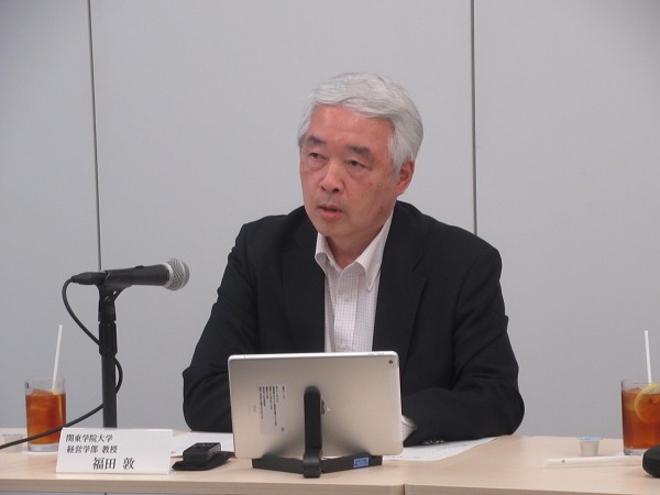 冒頭の福田座長のご挨拶に続き、事務局より流通・サービス事業者向け冊子およびワークシートの作成について、冊子本文案・ワークシート案・web版イメージの説明を行いました。また、折笠委員(流通経済研究所 主席研究員)より、「流通・サービス事業者の分類について」と題して、質問によってタイプ分けされる事業者の分類についてご説明いただきました。