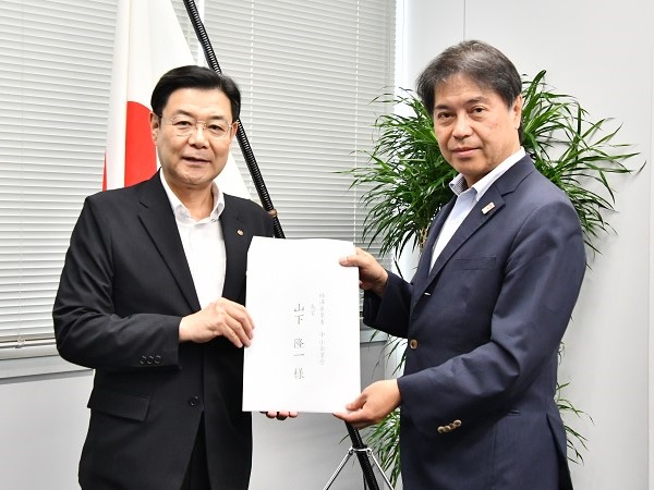 大島代次郎副会頭・中小企業委員長((株)千疋屋総本店社長)は、7月15日、中小企業庁の山下 隆一長官を訪問し、7月10日の常議員会において決議した「国の中小企業対策に関する重点要望」を直接提出しました。