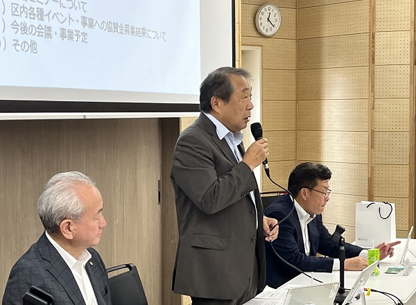 その後、支部青年部活動、景況感、本部会議・委員会活動、夏期セミナー等について、それぞれ支部役員より報告があり、事務局から東商1号議員選挙、区内各種イベント・事業への協賛金募集結果、東商事業等について説明を行いました。