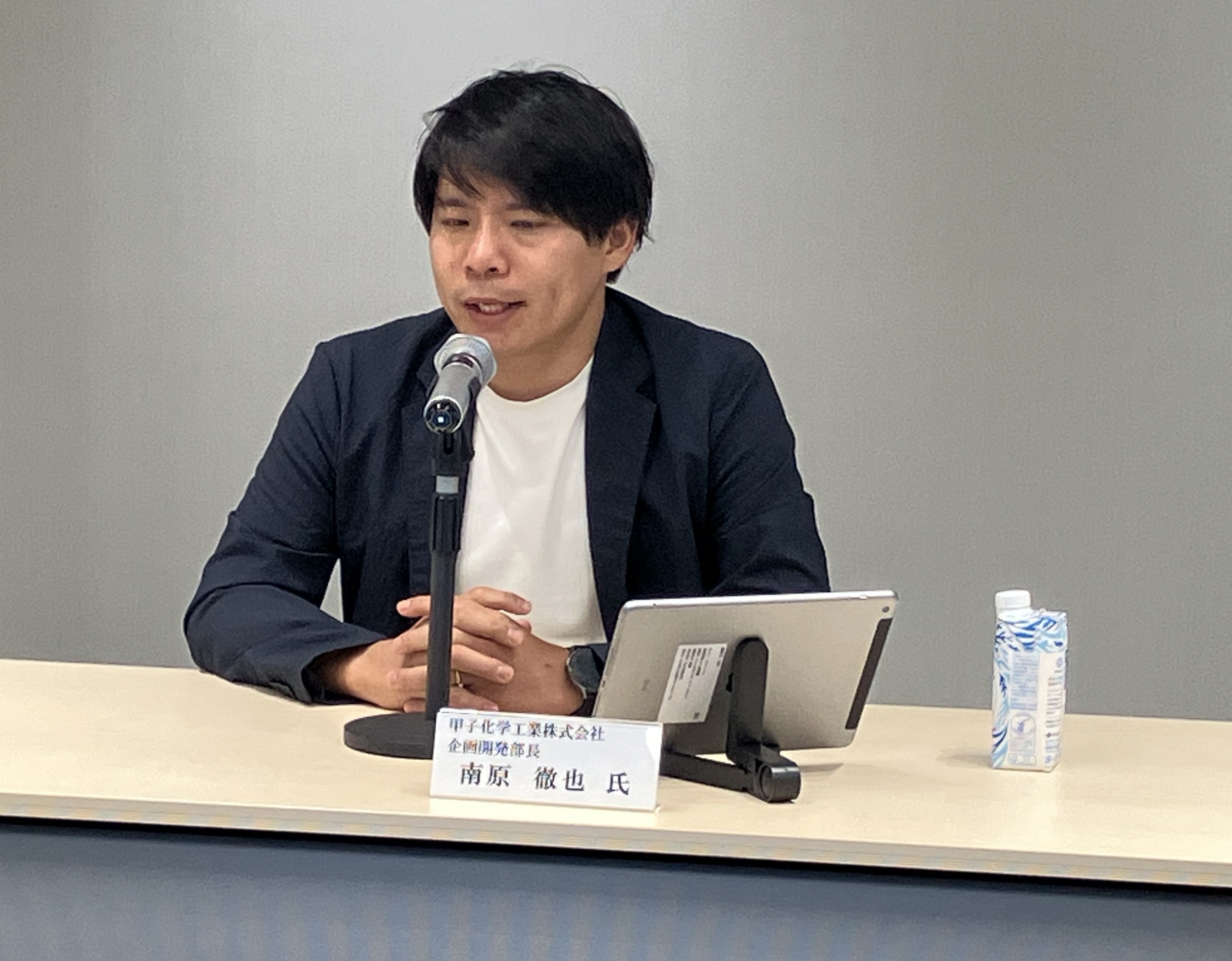 まず、環境省 地球環境局 地球温暖化対策課長 杉井 威夫 氏からカーボンフットプリントガイドラインについてご説明頂いた後、カーボンフットプリントの具体的な活用事例として、甲子化学工業株式会社 企画開発部 部長 南原 徹也 氏から同社の取り組み内容をご講演いただいた。その後、質疑応答も含め活発な意見交換を行った。
