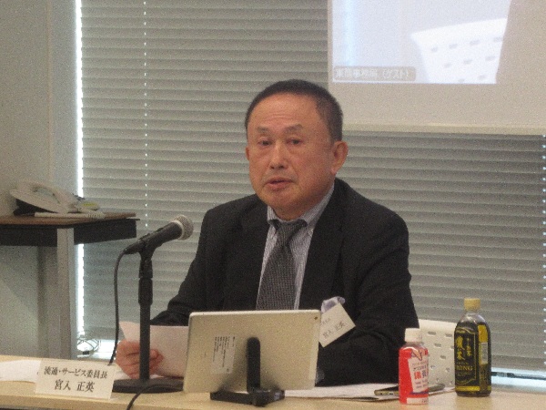 冒頭の宮入委員長(株式会社宮入社長)のご挨拶に続き、事務局より今期の流通・サービス委員会の活動について報告を行った後、共同委員長から今期の振り返りについてご発言いただきました。
