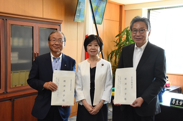 「これからの労働政策に関する懇談会最終レポート 『少数精鋭×地域共創』で人手不足を乗り越える」、「雇用・労働政策に関する重点要望」および「多様な人材の活躍に関する重点要望」を鰐淵厚生労働副大臣に手交しました