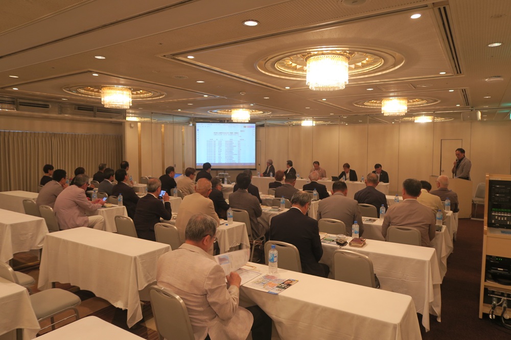 冒頭、飯野会長の挨拶に続き、事務局から10月2日(木)に投開票が行なわれた1号議員選挙結果、次期評議員の選任(案)、次期役員・顧問・相談役・参与の選任等について報告を行いました。