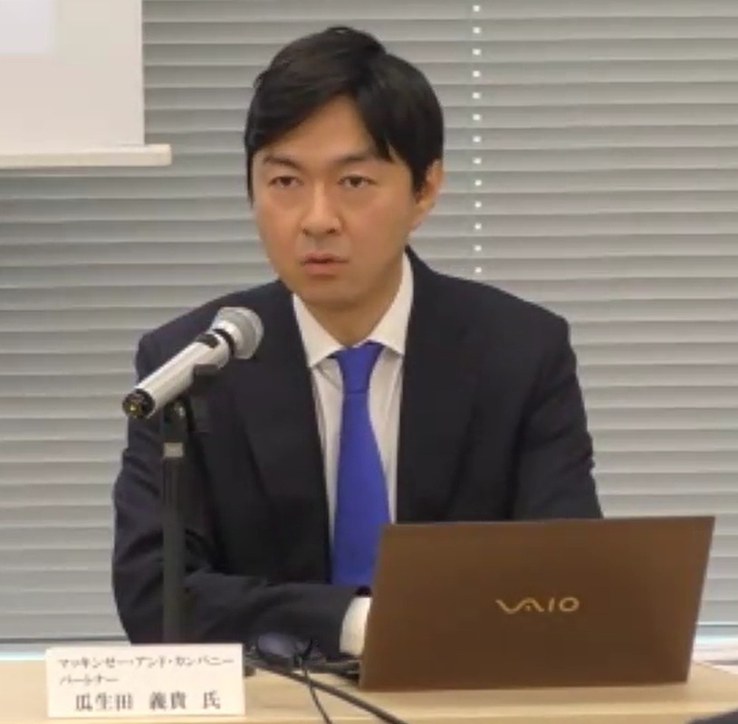 最初に、マッキンゼー・アンド・カンパニー・インコーポレイテッド・ジャパン パートナー 瓜生田 義貴 氏から、「2050年に向けた欧州のエネルギー転換と日本のポジション」をテーマに、エネルギーを取り巻くグローバルな潮流、欧州における再エネを中心とした脱炭素の状況、日本の状況と示唆についてご説明いただいた。