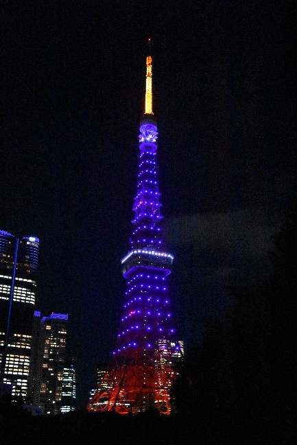 初代会頭・渋沢栄一翁の命日である11月11日にあわせ、東京タワーを渋沢翁ゆかりの「藍玉(あいだま)」をモチーフとした藍色にライトアップいたしました。同事業は、関東大震災の際に復興の先頭に立ち、罹災者支援や義捐金の募集など、様々な支援活動に尽力した渋沢翁の「逆境の時こそ、力を尽くす」という精神を受け継ぎ、逆境に負けずに戦うすべての方々への応援の気持ちを込めて実施したものです。