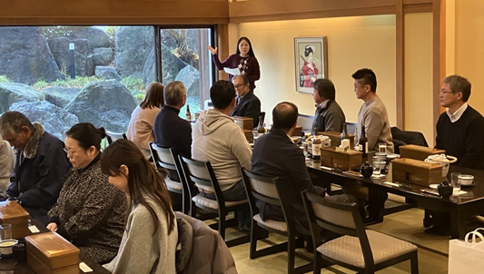 その後、「ホテルグランド東雲」にて昼食を取り、筑波ハム直売所「つくば陣屋」にて説明を受け、試食・ショッピングを行いました。