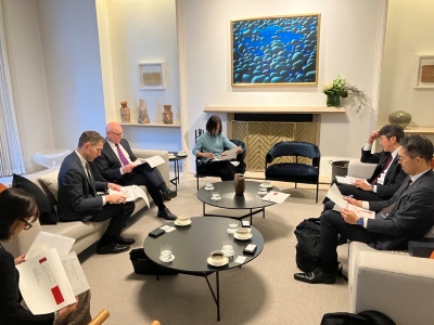 日本ニュージーランド経済委員会(委員長:市川晃〈住友林業株式会社 代表取締役会長〉)は、11月10日、来日中のレイ・スミス第一次産業省事務次官と面談しました。鈴木副委員長からは、当委員会が過去50年間にわたり両国の経済・人材・文化交流の促進に寄与してきたことを説明し、同月に開催される「日本ニュージーランド経済人会議」について紹介しました。