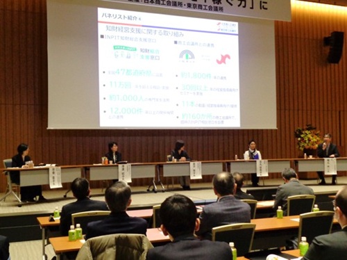 知的財産戦略委員会(委員長:宗像直子・東京大学公共政策大学院 教授)は2月17日、知的財産活用事例集発行記念シンポジウム「中小企業の知恵を『稼ぐ力』に」を渋沢ホールで開催しました。本シンポジウムは、知的財産活用事例集「知恵を『稼ぐ力』に~100社の舞台裏~」のデジタルブック発行を記念し、日本商工会議所 知的財産専門委員会との共催により開催したものです。当日は127名が参加し、盛況のうちに終了しました。