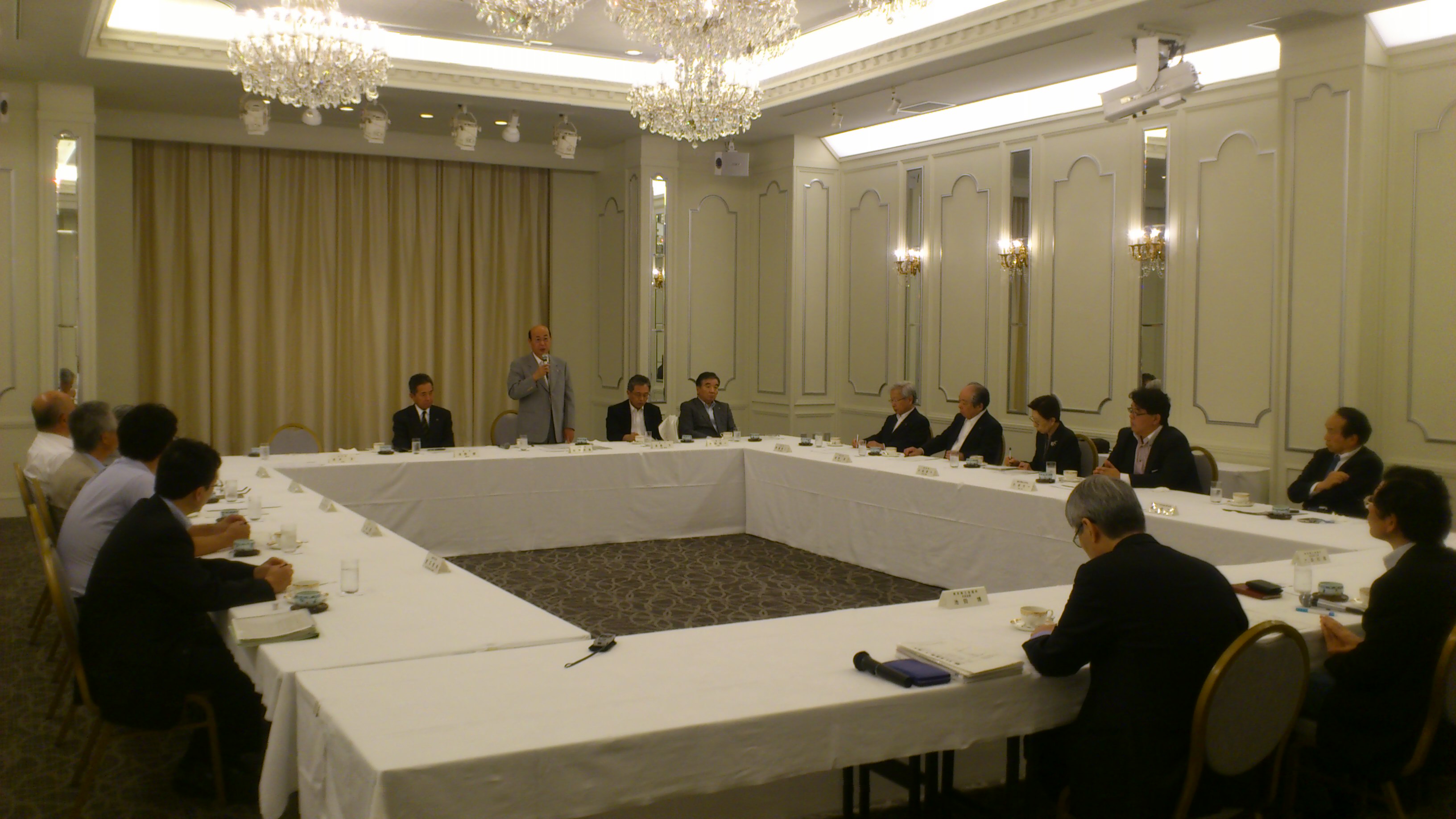 東京商工会議所 大田支部(会長=浅野健・株式会社 金羊社 代表取締役社長)は6月9日(月)、プラザ・アペアに於いて「大田区長と東京商工会議所 大田支部役員との懇談会」を開催しました。大田区側から松原区長、幸田副区長と遠藤副区長、大田支部側から浅野会長、副会長等計14名が出席しました。