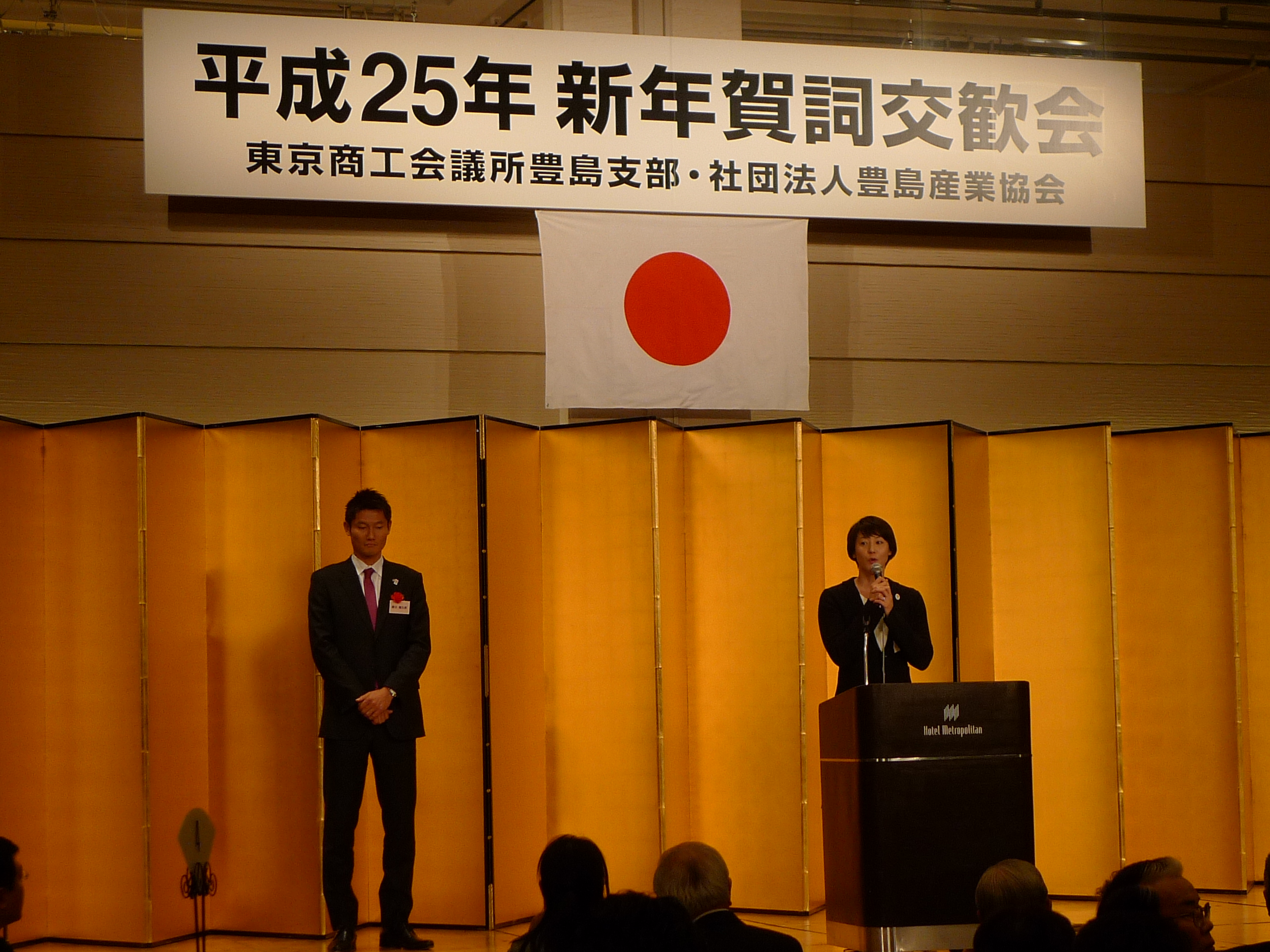 豊島支部は1月11日、新年賀詞交歓会を豊島産業協会とともに開催し約250名が参加しました。当日は鈴木正美・豊島支部会長と脇龍太郎・豊島産業協会会長が今年の活動に対する決意などを述べたほか、高野之夫・豊島区長、小池ゆりこ・衆議院議員など来賓の皆様からもあいさつを戴きました。