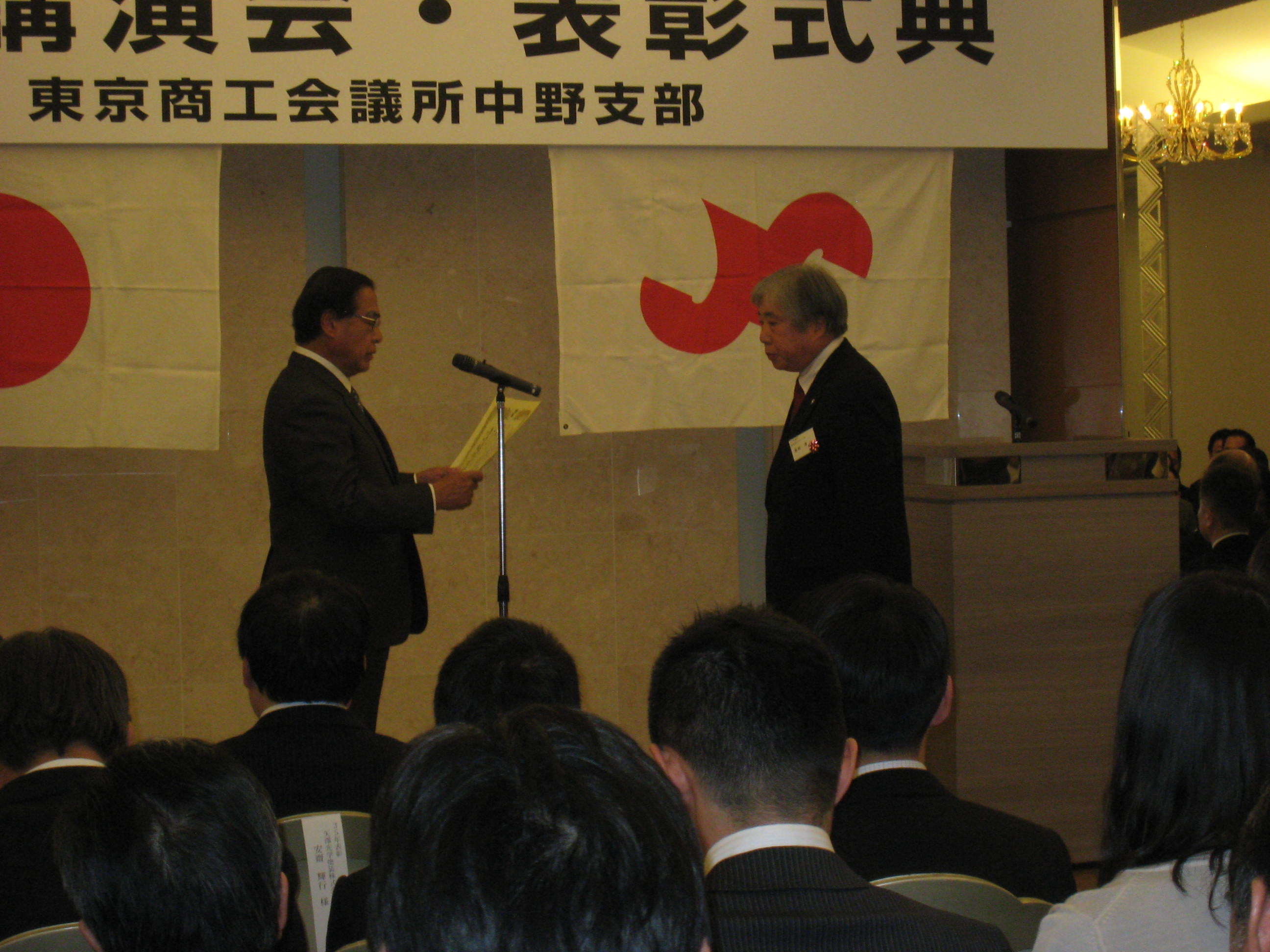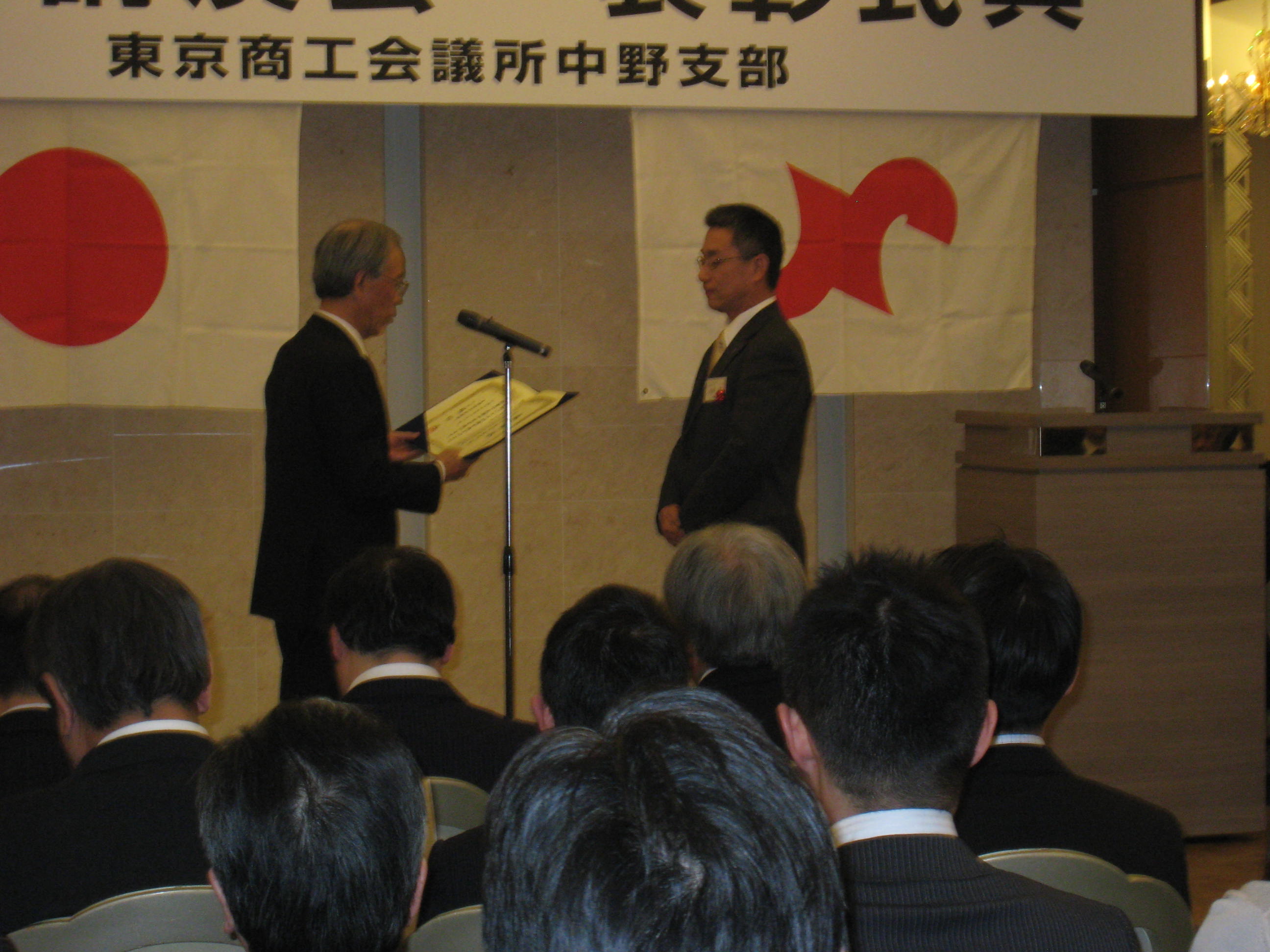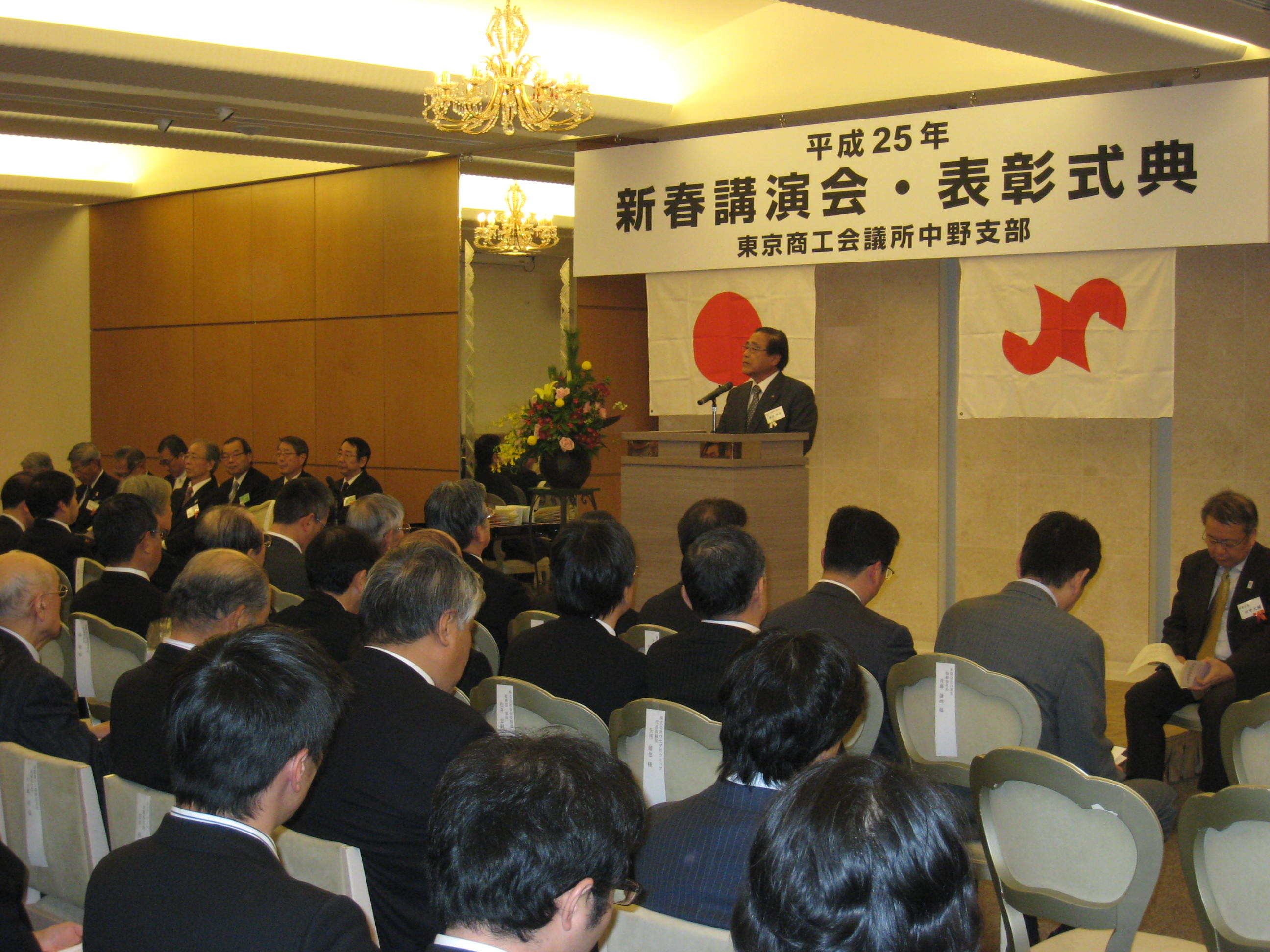まず、主催者を代表して、東京商工会議所中野支部 麻沼 雅海会長の挨拶があり、続いて来賓祝辞として、田中 大輔 中野区長、東京商工会議所 杉山 清次副会頭から挨拶がありました。