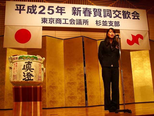 第二部〈新年賀詞交歓会〉では、宇田川 紀通・杉並支部会長と本庄 八郎・東京商工会議所副会頭が本年の抱負を述べ、田中 良・杉並区長など多くの来賓の皆様からもご挨拶をいただきました。