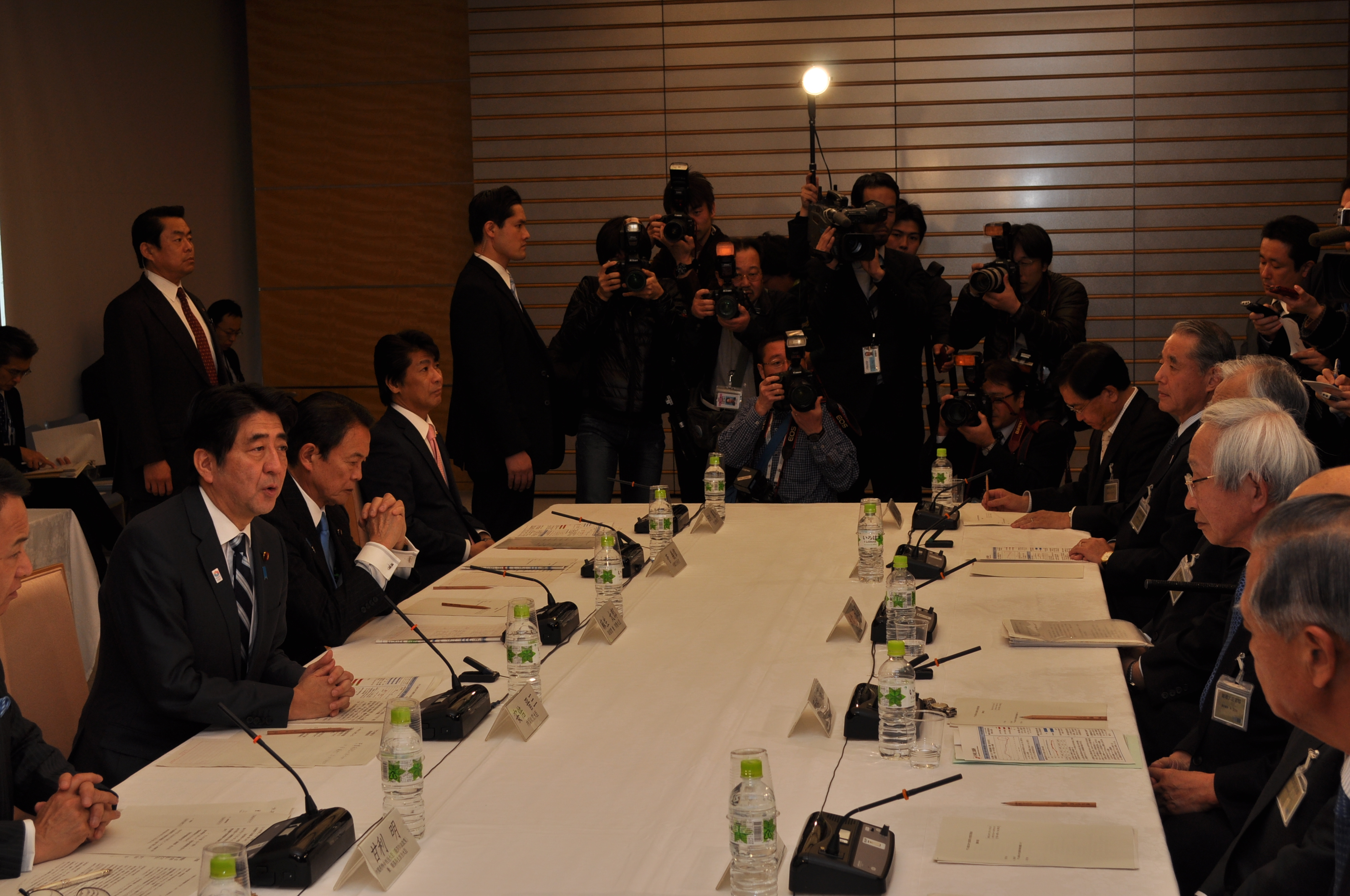 2月12日に、安倍総理大臣をはじめ関係閣僚と、日商など経済3団体との「デフレ脱却に向けた意見交換会」が開催されました。