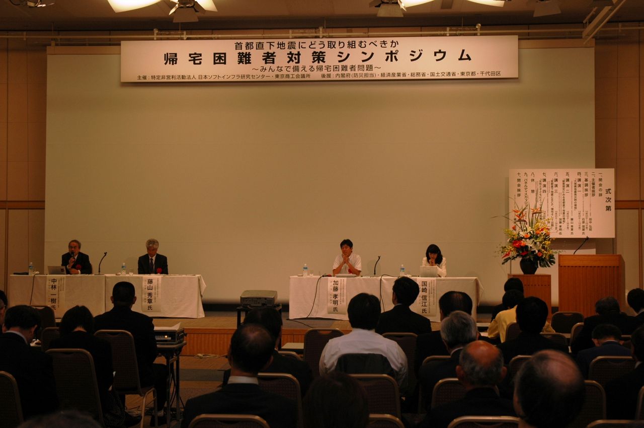 東京商工会議所は5月20日、特定非営利活動法人 日本ソフトインフラ研究センターと共催で、「帰宅困難者対策シンポジウム~みんなで備える帰宅困難者対策問題~」を開催し、549名が参加しました。