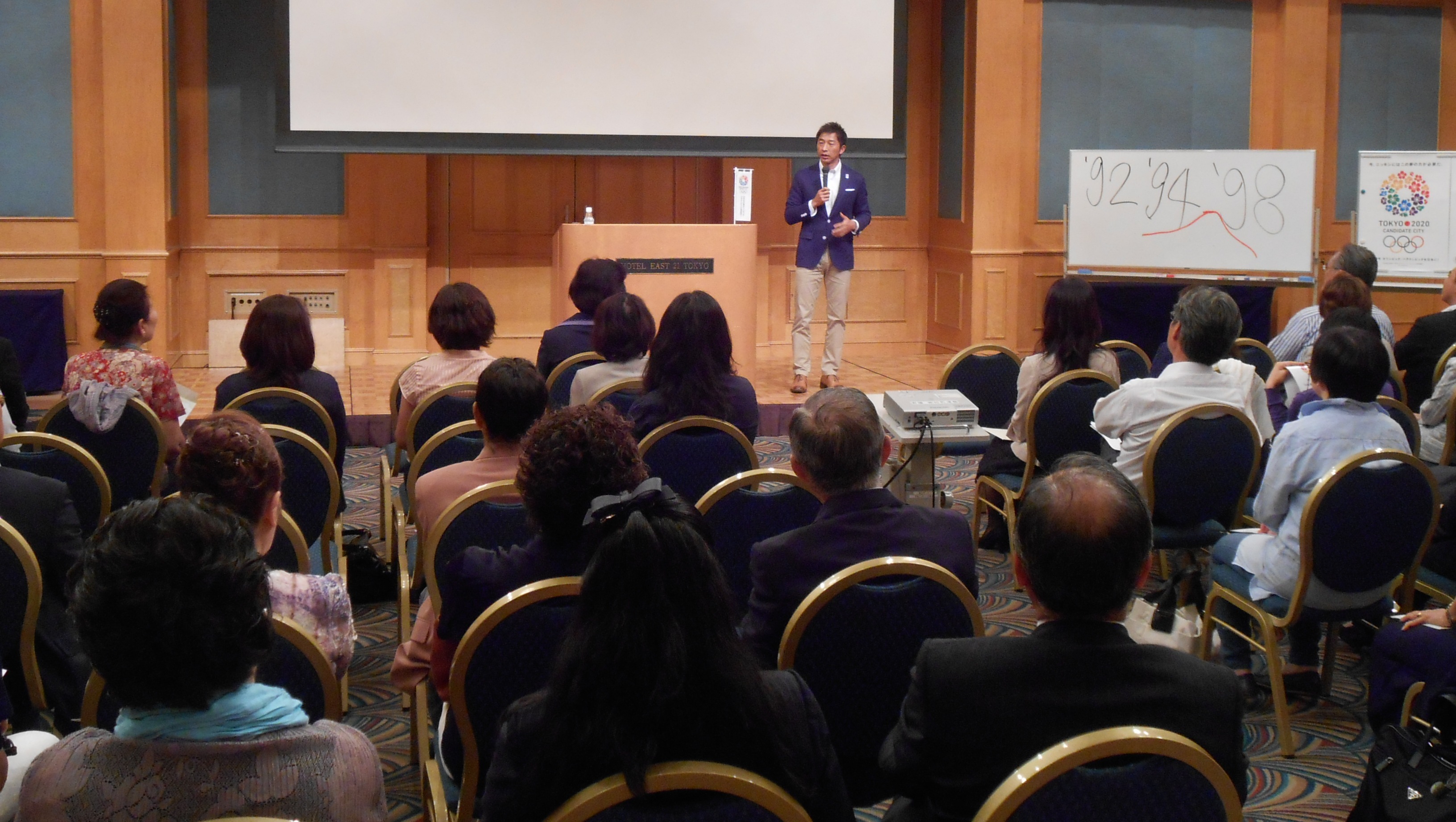 講師でスポーツキャスターの荻原次晴氏からは、東京で開催される意義や、ご自身のオリンピックに出場した体験談を交えて語っていただきました。参加者は、普段なかなか聞けないような内容に熱心に耳を傾け、2020年の招致実現に向けての気運が更に高まりました。