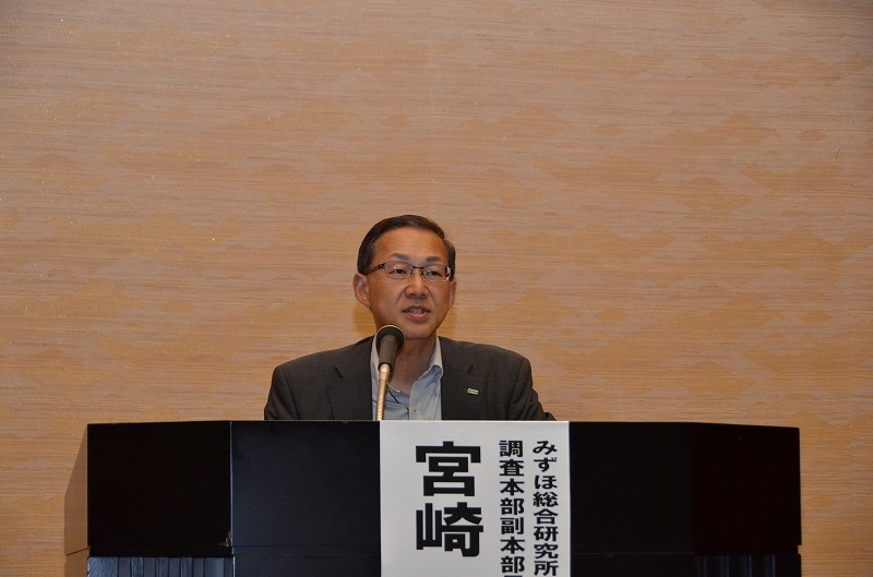 講師のみずほ総合研究所株式会社 上席執行役員 調査本部副本部長 首席エコノミスト 宮崎和貴氏からは、アベノミクスを軸に日本経済の今後についてお話がありました。