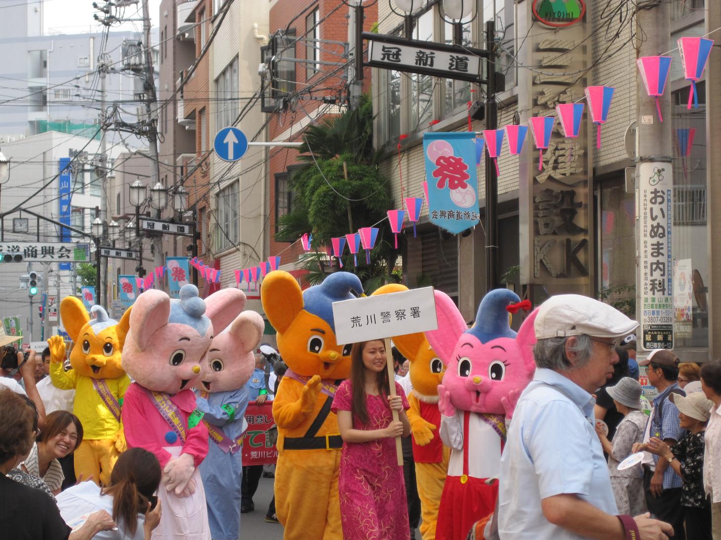 併せて、荒川警察署・荒川消防署の協力もあり、秋の全国交通安全運動・お母さん助けて詐欺撲滅のPR、家具の転倒・落下・移動防止対策のPRパレードも行われ、多くの方々が集まりました。