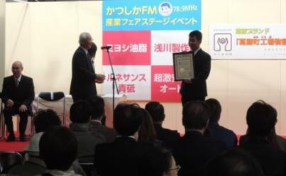 葛飾支部(会長=信川仁道)と葛飾区は、第7回葛飾ブランド「葛飾町工場物語」認定製品を決定し、10月19日、区内産業の祭典である葛飾区産業フェア会場にて、認定証授与式を行いました。