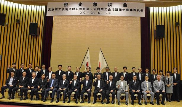 東京商工会議所 観光委員会(委員長=佐々木隆特別顧問・ジェイティービー会長)は、9月25日、大韓商工会議所との観光懇談会を開催し、東商から観光委員会の委員長・共同委員長はじめ19人、大韓商工会議所からは観光産業委員会正副委員長ら21人が参加しました。