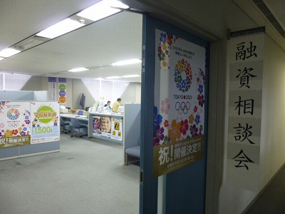 会議室内に設けられた個別相談ブースでは、訪れた大田区内の事業者に対し、経営指導員および公庫担当者が公的融資制度の説明や利用に向けた相談に応じました。