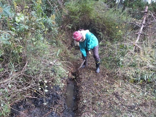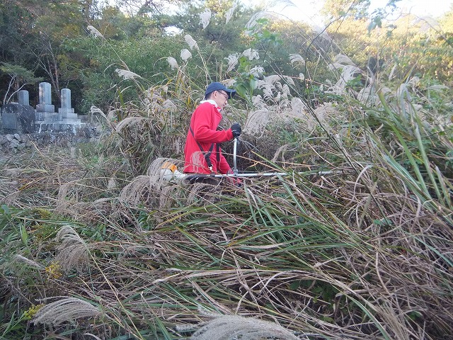 1日目は、現地で復興活動を続ける南相馬市ボランティア活動センターの協力の下、津波による被災を免れた墓地周辺の1~2メートルに伸びた草木の伐採や、高台にある墓地へ繋がる道の除草及び、側溝の泥出し等を行いました。
