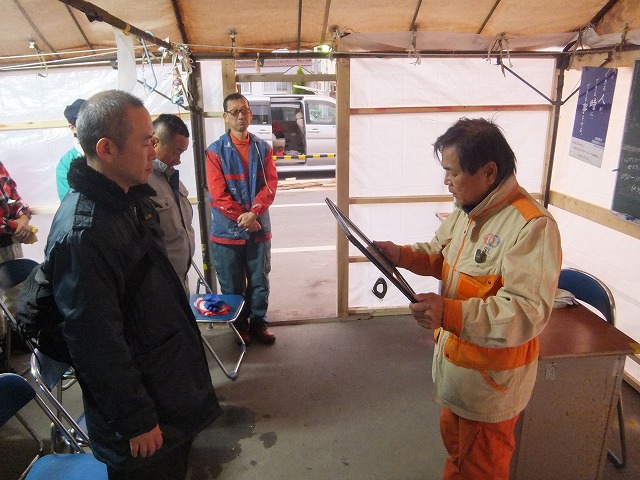 2日目は、震災後、営業停止した酒屋にて、商品・家財の分別撤去等を行いました。約6時間の作業の結果、商店部分の撤去が完了し、フレコンバッグ(トン袋)28袋が搬出されました。立ち会いされた被災者の方より、直接感謝の言葉を頂くとともに、南相馬市ボランティア活動センターからは、感謝状が授与されました。