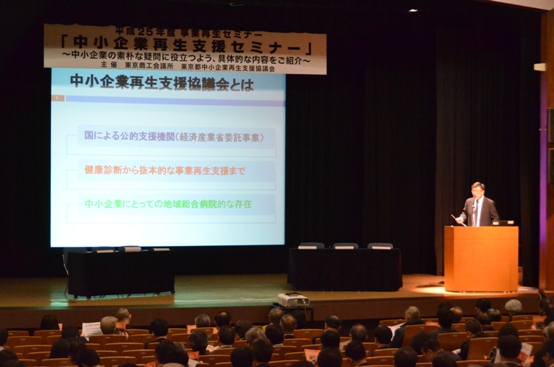 東京都中小企業再生支援協議会は、11月19日(火)、「中小企業再生支援セミナー ~中小企業の素朴な疑問に役立つよう、具体的な内容をご紹介~」を東商ホールで開催し、都内の中小企業経営者ら200名を超える参加がありました。