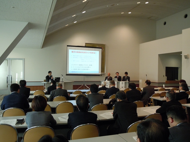22日に行われた事業承継シンポジウムでは、今年7月から9月にかけて、当支部で実施した区内企業の事業承継の実態調査の結果について発表したほか、現在事業承継に実際取り組んでいる企業の代表者と後継者がパネリストとして参加するパネルディスカッションを実施しました。その後には、名刺交換会を行い、参加者同士の交流を行いました。