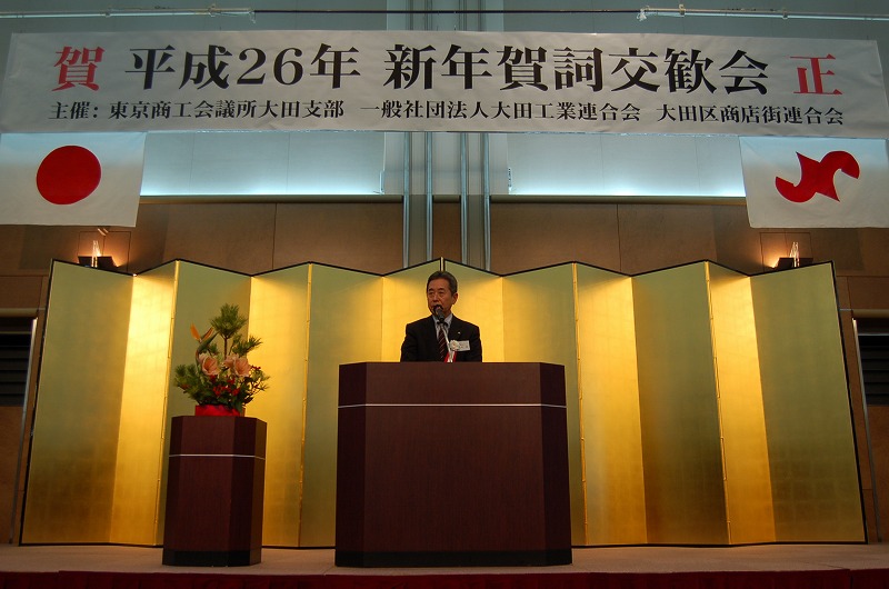 東京商工会議所大田支部は1月22日、大田区商店街連合会、一般社団法人大田工業連合会と共催で新年賀詞交歓会を開催しました。当日は、区内会員企業と多数のご来賓により351名が参加しました。