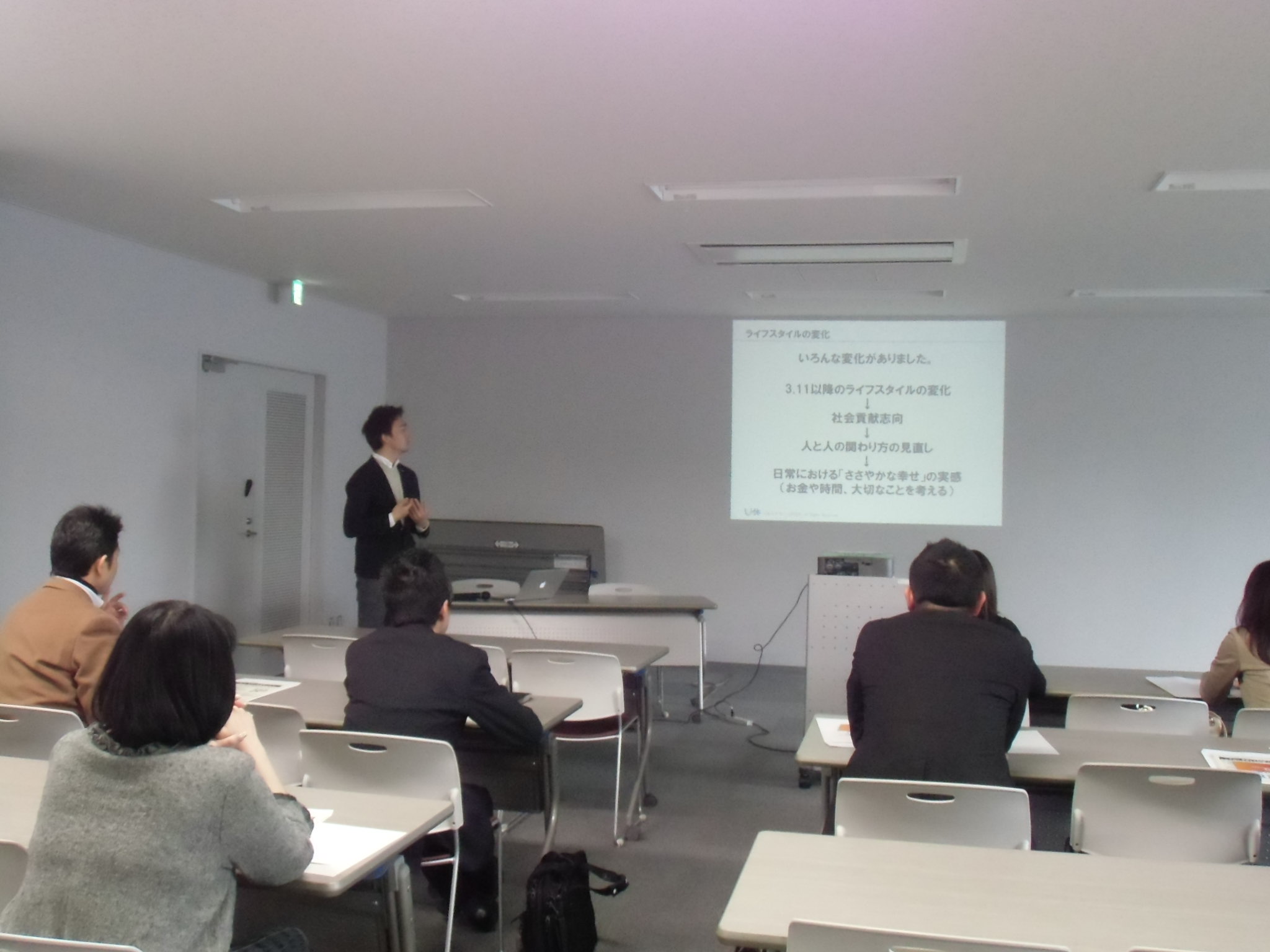 「休日市場」という新しい切り口で、消費者に「充実できる価値ある時間」を提供するにはどのような視点でサービスを考えればよいのか、参加者同士ディスカッションをしながら解説。