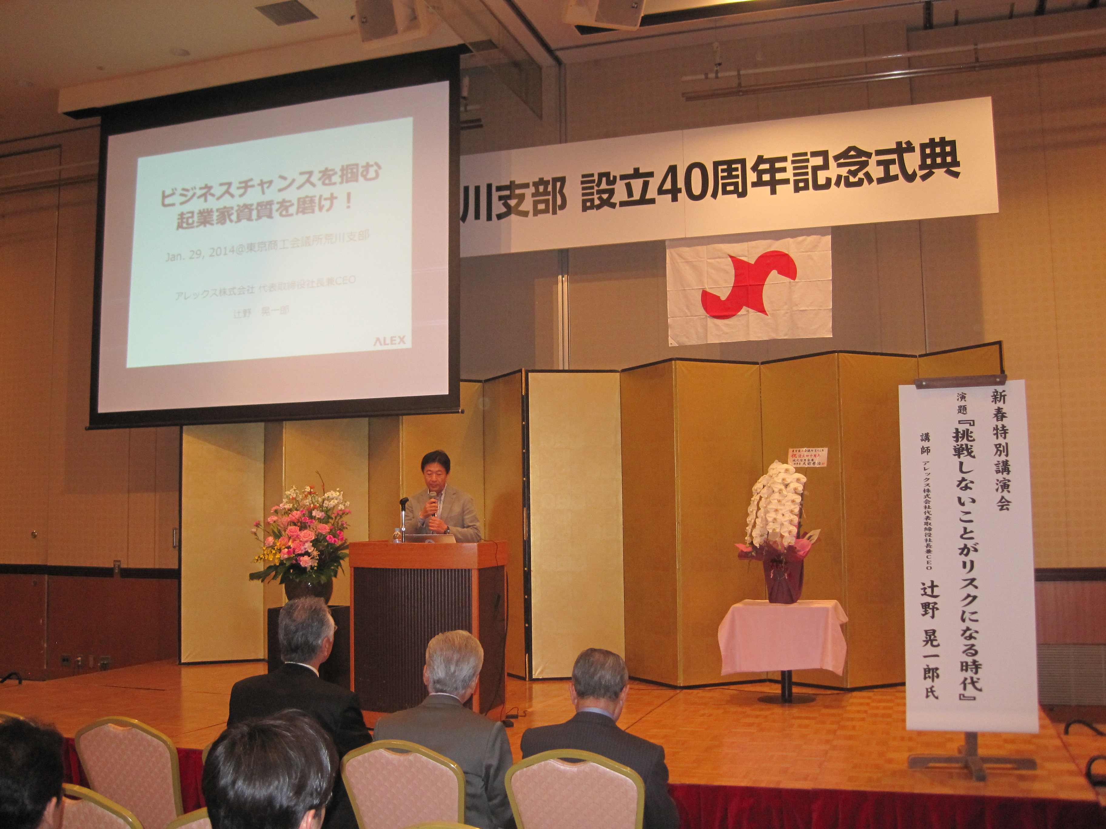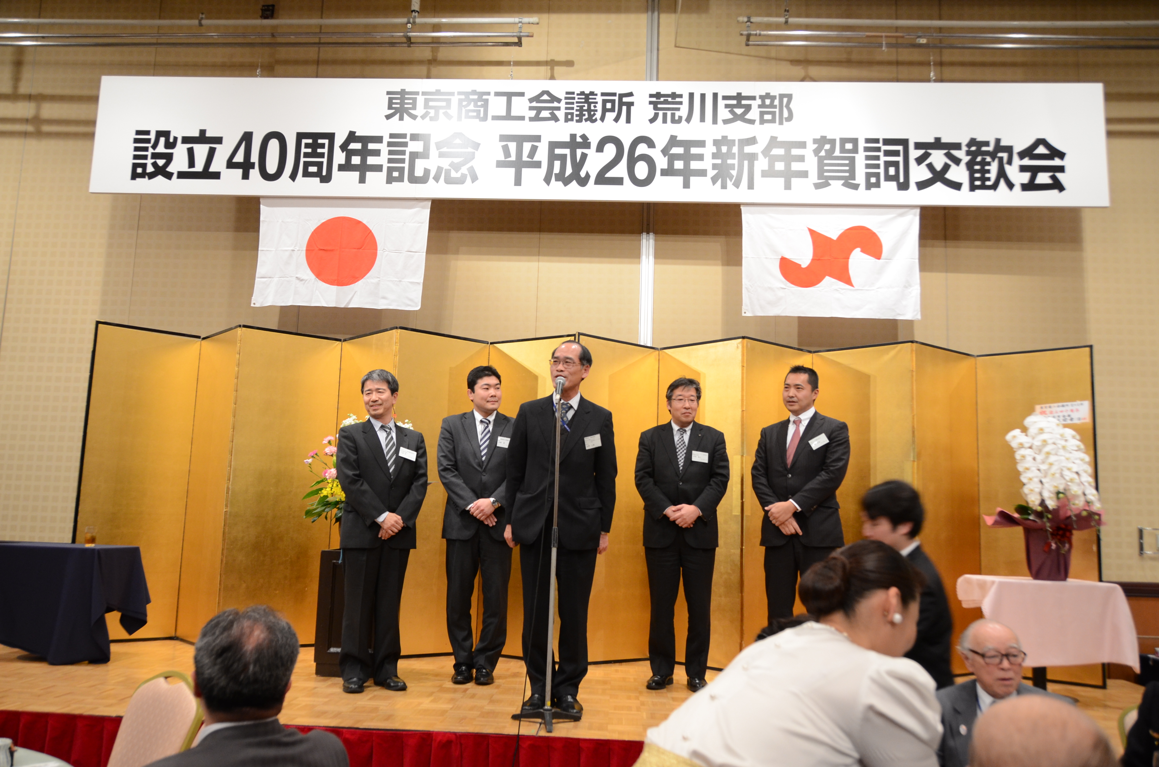 平成26年1月29日(水)、ホテルラングウッドにおいて、「新年賀詞交歓会」を開催しました。今回は、昭和48年12月14日の荒川支部設立以来、40年を経たことから「設立40周年記念式典」も併せて執り行いました。
