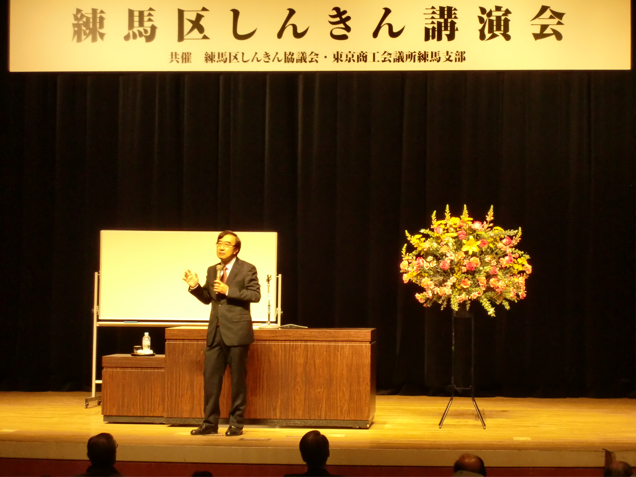 練馬支部は2月13日、練馬区しんきん協議会と共催で、著名な経済エコノミストでありかつテレビ等のコメンテーターとしてもご活躍されている信州大学経済学部教授 真壁昭夫(まかべ あきお)先生をお招きして、「消費税増税によるアベノミクスの今後」と題し、講演会を開催しました。現在の日本経済の状況や今後の世界経済、金融動向の見通しについて、実例や指標をあげながらわかりやすくお話しいただきました。