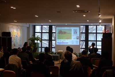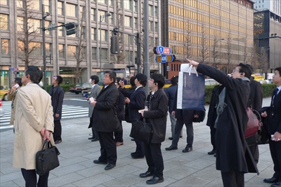 今年度は三菱地所株式会社 街ブランド企画部 副長 渡邉 眞幸 氏を講師に迎え、新東京ビルのmarunouchi cafe SEEKにおいて、東京丸の内の「街ブランド戦略」についてお話しいただきました。当日は、丸の内の歴史や再構築の取組み、そのブランドの戦略について説明していただきました。後半は、実際に丸の内を歩きながら、説明のあった取組み状況などについて視察しました。